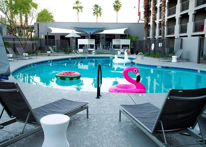 Moxy Phoenix Tempe/ASU Area is a 3-star hotel offering stylish and clean rooms with modern amenities and an outdoor pool. This pet-friendly property features 24/7 snack options and a vibrant bar for guests.