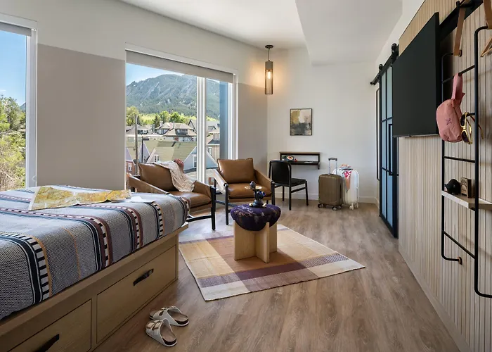 Moxy Boulder University is a 4-star hotel with a rating of 8.1/10 on Booking.com, featuring a fitness center, private parking, and a restaurant. This Boulder hotel offers easy access to several notable attractions, including the Boulder Museum of Contemporary Art.