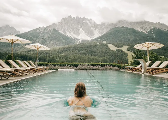Naturhotel Leitlhof is situated amidst the scenic Dolomites, providing convenient access to nearby attractions such as the military shrine of Innichen and the DoloMythos museum. Public transport options include bus services and cable cars for accessing the surrounding mountainous areas.