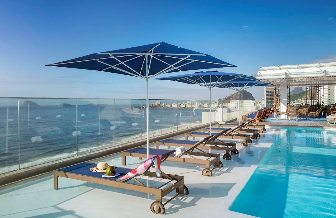 Novotel Rio de Janeiro Leme, a 4-star hotel rated 8.2/10 on Booking.com, offers a rooftop outdoor pool, bar, and panoramic views. The hotel provides free WiFi, modern room amenities, and is situated just 328 ft from Leme Beach.