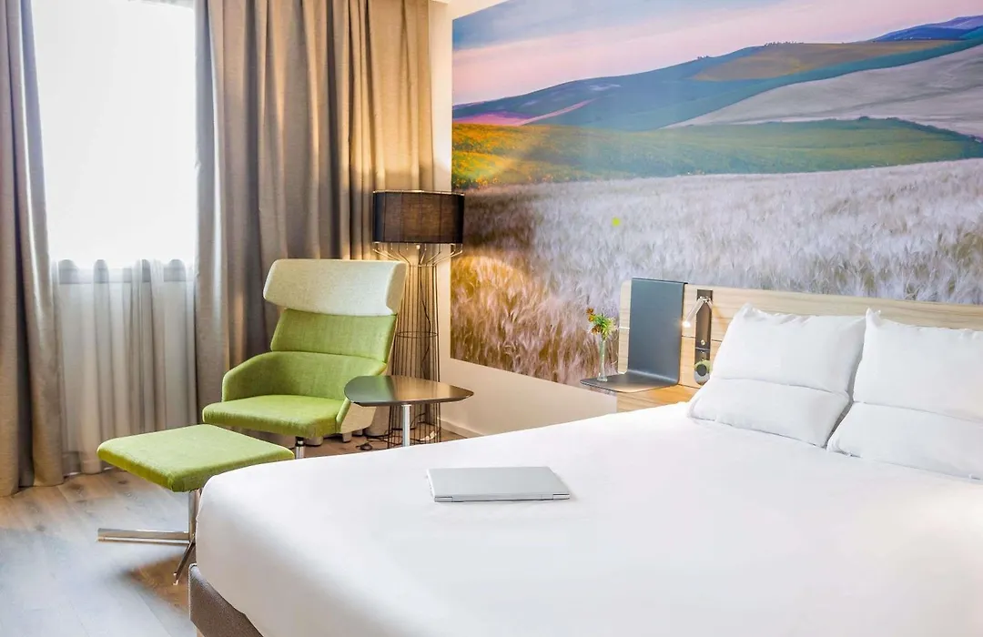 Novotel Sevilla, a 4-star hotel with an 8.4/10 rating, features modern accommodations and a Mediterranean restaurant serving local cuisine. The hotel offers amenities such as a rooftop pool, fitness center, and 24-hour reception.