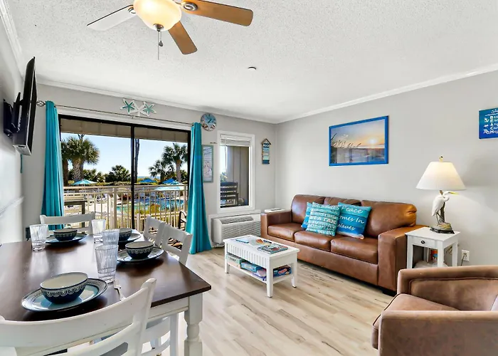 Ocean Dunes Villas #111, Beach Condo In Coligny Beach, 43 S Forest Beach Dr, Hilton Head Sc, Oceanfront Condo, Heated Pool, By Vacation Rental Hhi is a 3-star Hilton Head Island hotel featuring an outdoor swimming pool and air-conditioned accommodations with a balcony offering pool and sea views. The property provides amenities such as free toiletries, a flat-screen TV, and a fully equipped kitchen.