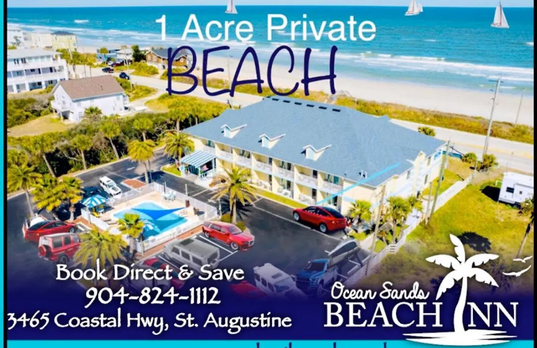 Ocean Sands Beach Inn (Adults Only), a 4-star St. Augustine hotel rated 8.7/10 on Booking.com, features direct access to Vilano Beach and offers scenic views of the Atlantic Ocean and wetlands. Guests enjoy an outdoor pool, complimentary breakfast, and free Wi-Fi throughout the property.