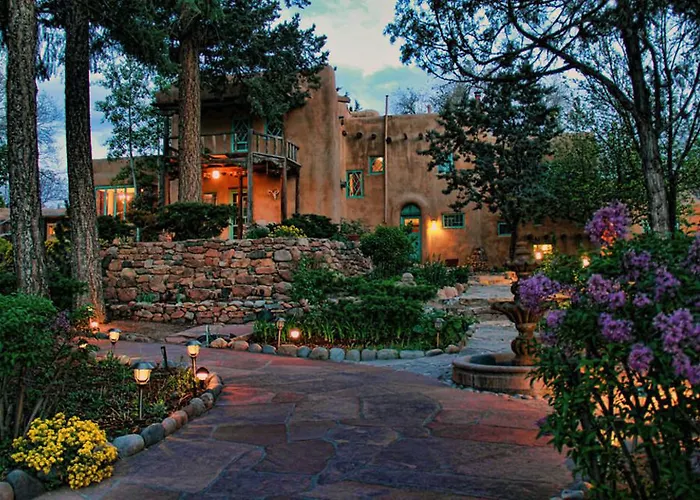 Inn Of The Turquoise Bear is a 3-star Santa Fe hotel with a 10.0/10 Booking.com rating. This historic adobe estate features lush gardens, private room entrances, and gourmet breakfasts, attracting artists and writers since the 1920s.