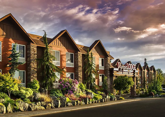 Olympic Lodge By Ayres, a 4-star Port Angeles hotel rated 9.2/10 on Booking.com, features stunning landscaping and breathtaking views of the Peninsula Golf Course and Olympic Mountains. The hotel offers 105 cozy guestrooms, a heated outdoor pool, a hot tub, and a 24-hour fitness center.