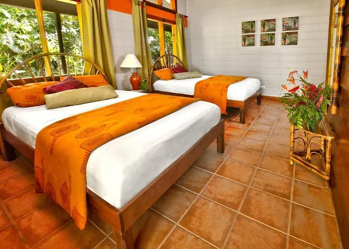 The rooms at Pachira Lodge include ceiling fans, hot water, and safety deposit boxes. Guests can choose from garden-view rooms and superior bungalows, accommodating up to four people. This jungle retreat allows visitors to disconnect and reconnect with nature.