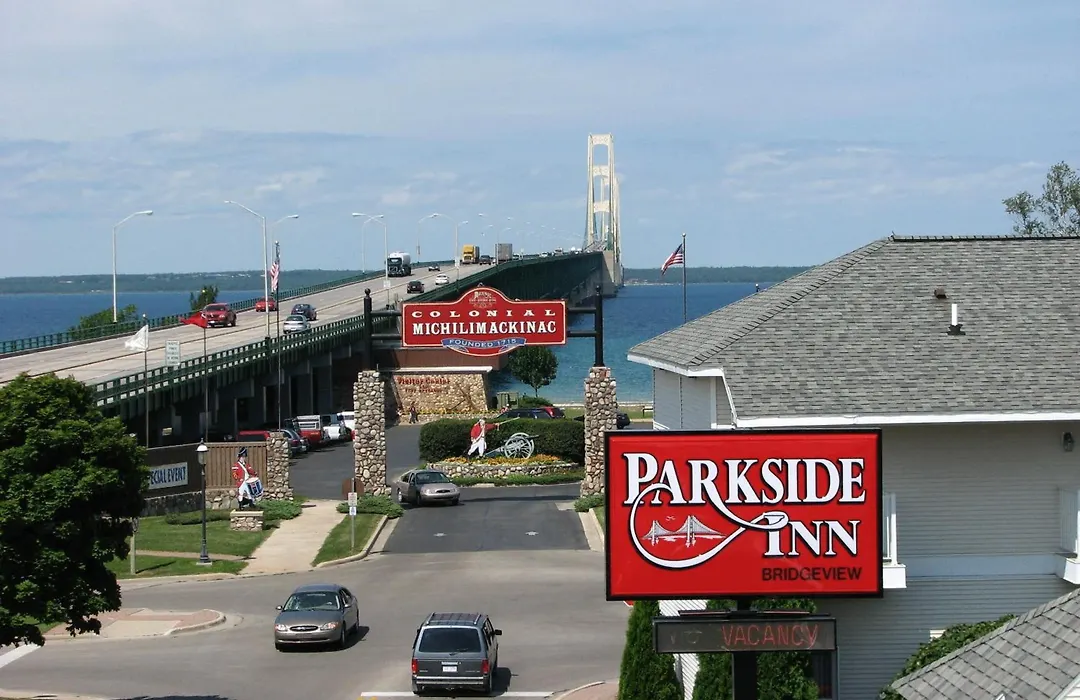 Parkside Inn Bridgeview, a 3-star Mackinaw City hotel rated 8.2/10 on Booking.com, features an indoor pool, hot tub, and complimentary hot continental breakfast. Offering views of the majestic Straits and Mackinac Bridge, it ensures effortless access to local attractions.