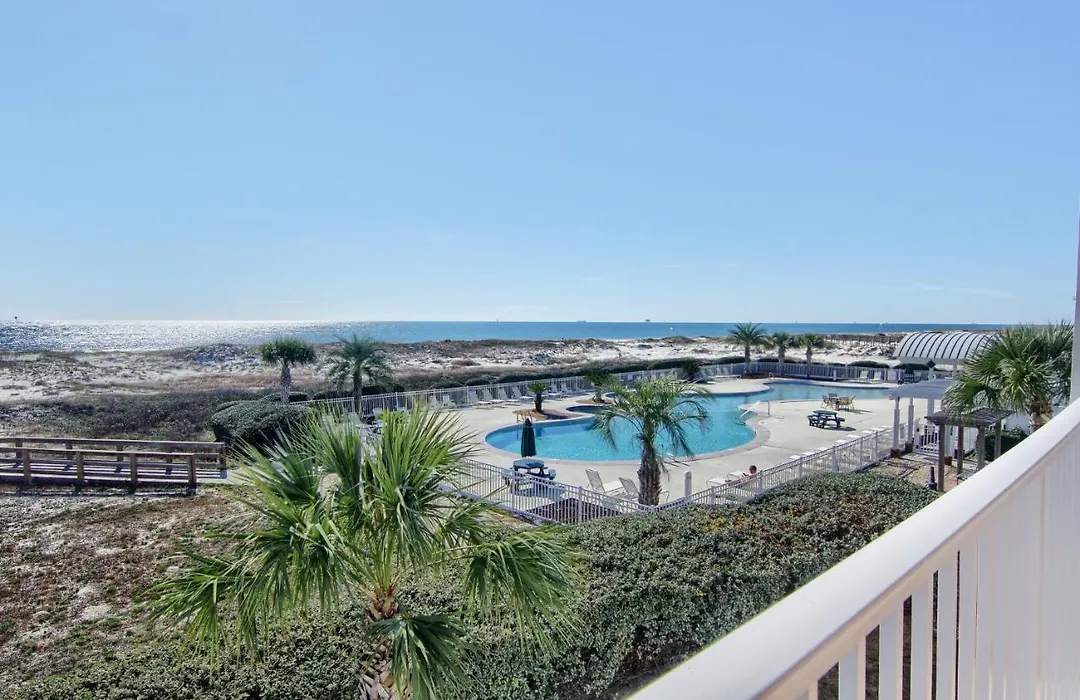 Leisure activities at Gulf Shores Plantation Condos include an outdoor swimming pool, fitness center, and access to a private beach area. Guests can engage in diving, fishing, or simply relax at the pool. A hot tub is available for added relaxation.