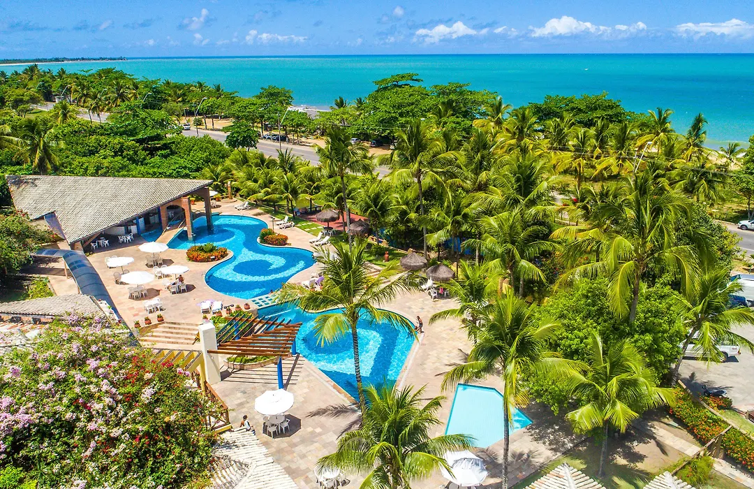 Portobello Praia, a 4-star hotel with a 7.9/10 rating on Booking.com, features a free-form outdoor swimming pool surrounded by palm trees and a beach bar. Guests enjoy a variety of amenities, including a tennis court and recreational facilities.