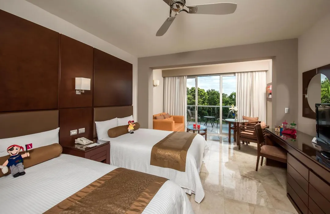 Princess Family Club Riviera features 144 fully-equipped family rooms, including options with direct pool access. Each room includes two double beds or one king-size bed and a bunk bed, perfect for families.