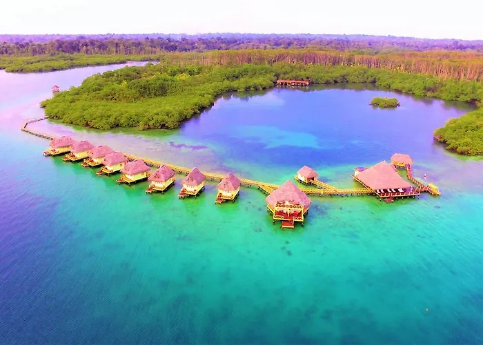 Punta Caracol Acqua Lodge offers unique overwater cabins in a natural environment with easy access to coral reefs. This eco-friendly 4-star accommodation emphasizes sustainability and provides various leisure activities, including snorkeling and dolphin-watching excursions.