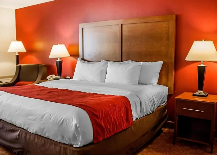 Rooms at Quality Inn include premium linens, flat-screen TVs, and modern conveniences like microwaves and refrigerators. Each air-conditioned room features a work desk, ensuring a comfortable stay for guests. Bathrooms are equipped with shower/tub combinations and complimentary toiletries.