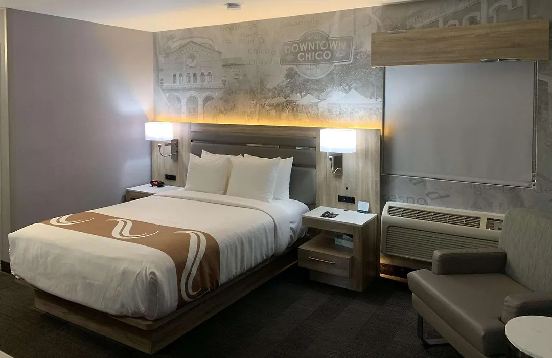 Rooms at Quality Inn Near Chico State are equipped with premium linens, a microwave, refrigerator, and flat-screen TVs. Guests enjoy thoughtful touches such as laptop-friendly workspaces and private bathrooms with complimentary toiletries.