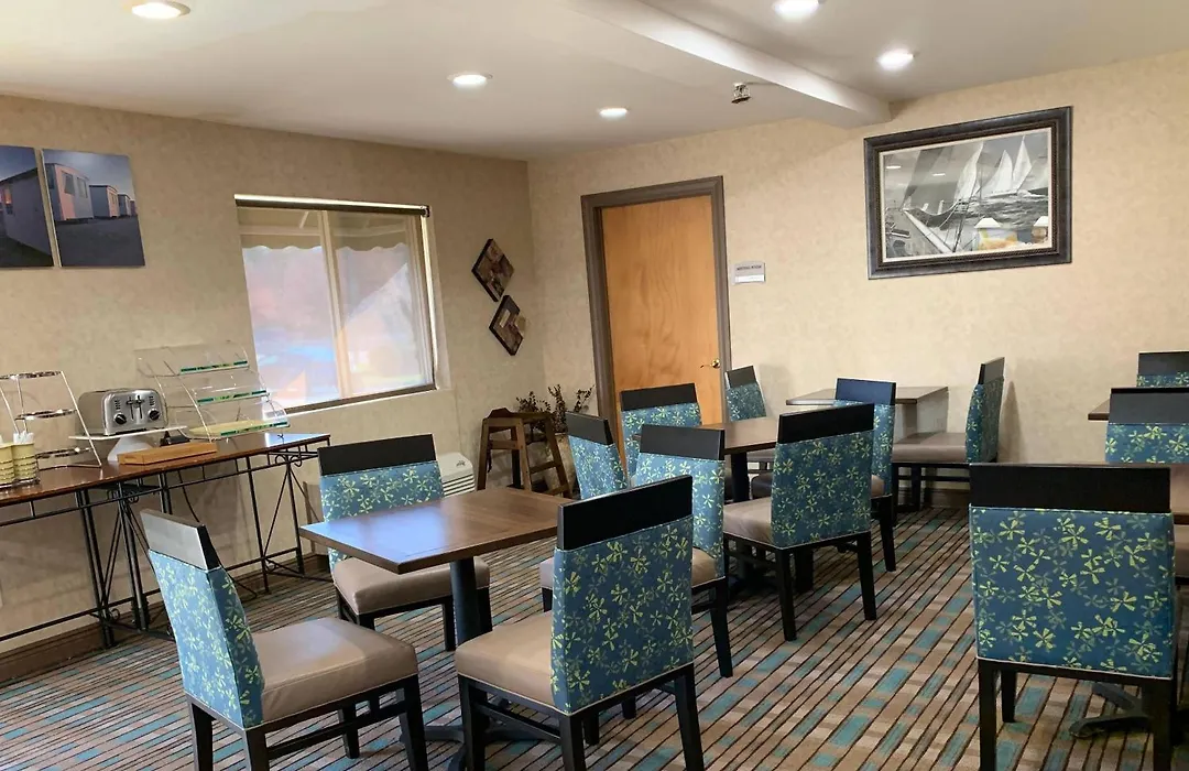 The hotel provides a full breakfast with hot and cold options, including waffles, eggs, and fresh fruit. Nearby dining choices are available for additional meal options.