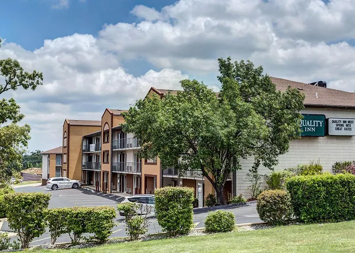 Quality Inn West is situated near attractions including Silver Dollar City, the IMAX Entertainment Complex, and various theaters such as the Shoji Tabuchi Theatre. The hotel provides amenities like free local calls, parking, and laundry services.