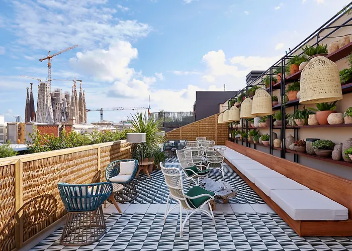 Radisson Blu 1882 Hotel, Barcelona Sagrada Familia is a 4-star hotel in Gràcia, featuring a rooftop swimming pool and a gym. The hotel offers a diverse menu that includes options for vegans and those with food allergies or intolerances.