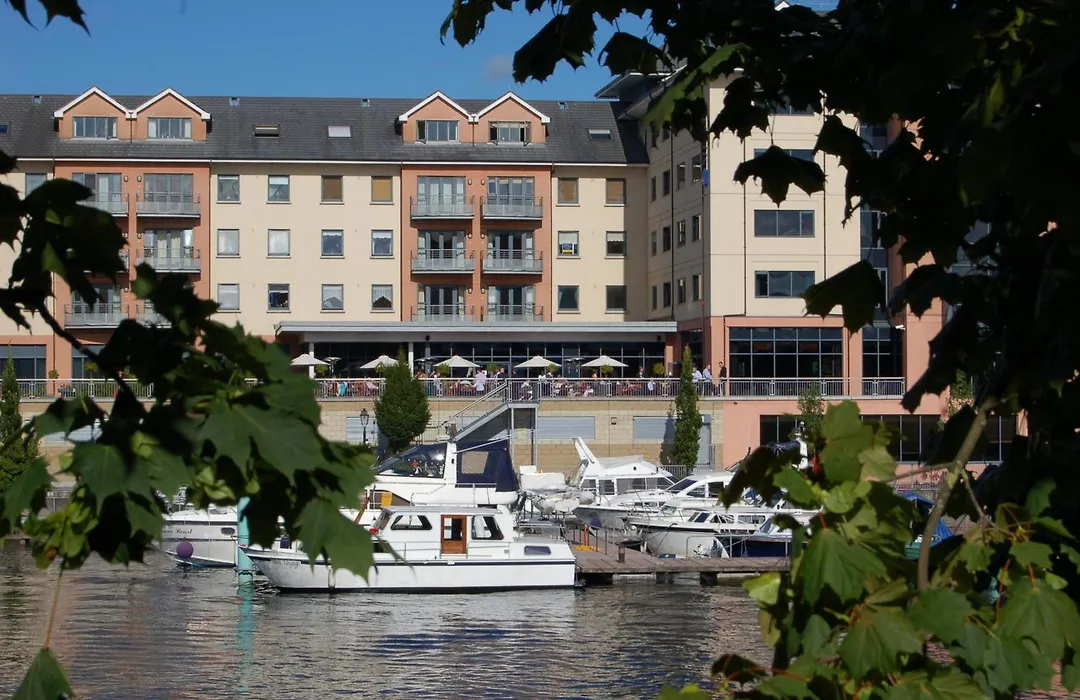 Elements Restaurant serves a Super Breakfast buffet alongside an extensive dinner menu emphasizing local ingredients. Quayside Bar & Lounge offers light snacks, drinks, and light meals, all with panoramic views of the river. The Marina Ballroom is available for dining and event gatherings, featuring stunning views of Athlone Castle.