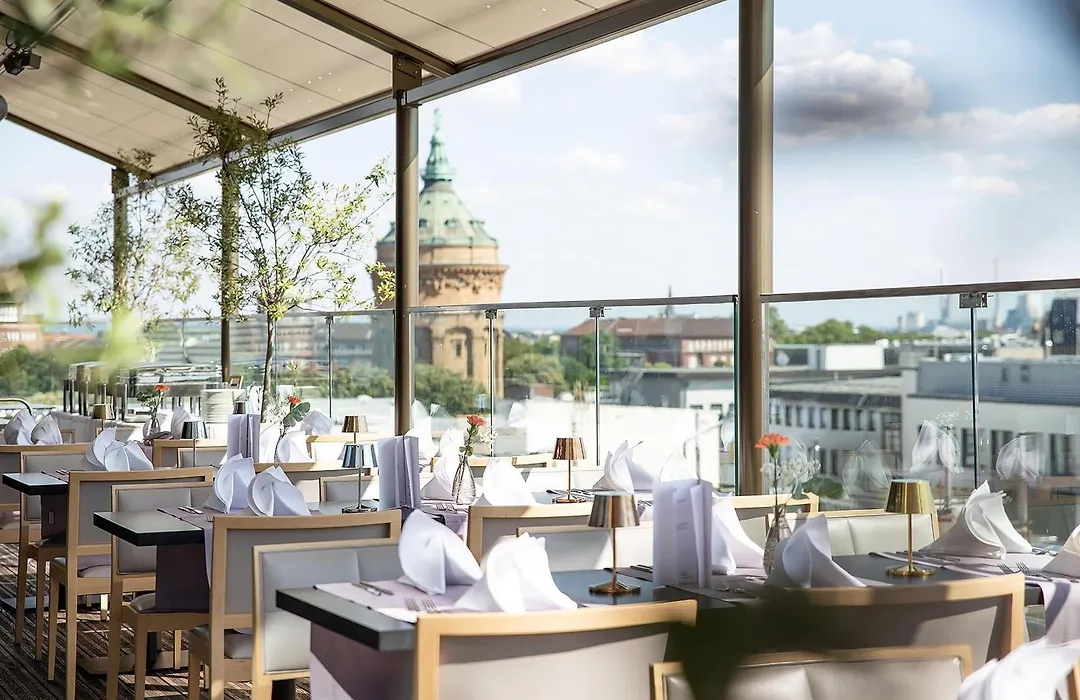 Dining options at this Mannheim hotel include SQUARE restaurant, which offers a breakfast buffet and regional dishes with views of the city, and ROOF Bar for casual meals. Guests can also enjoy coffee specialties and pastries at Café BRUE. Each venue provides a unique ambiance for dining and socializing.