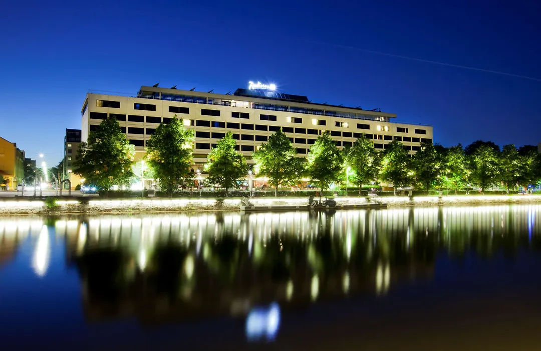 Radisson Blu Marina Palace Hotel, Turku features a scenic location along the Aura River, offering a blend of business and leisure amenities in its 4-star accommodations. Guests can enjoy access to 13 versatile meeting rooms and a lively on-site bar terrace overlooking the river.