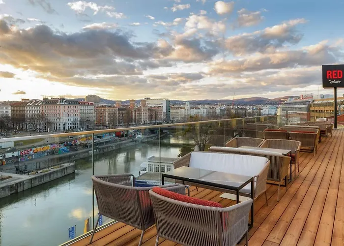 Radisson Red Hotel, Vienna, is a modern 4-star hotel featuring stylish accommodations, a fitness center, and a rooftop bar overlooking the Danube Canal. Guests can enjoy a variety of Mediterranean and international cuisine at the on-site restaurant. This Vienna hotel is rated 8.4/10 on Booking.com.