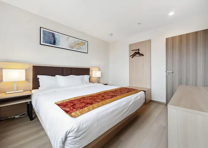 Convenient transportation options include the 7 subway line located a 6-minute walk away and bus stops within 4 minutes on foot. The nearest airport is LaGuardia Airport, providing easy access to the hotel.