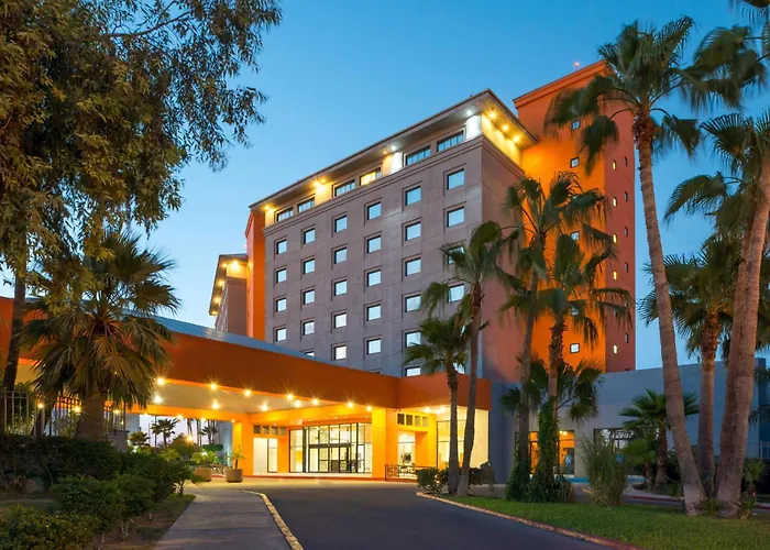 Real Inn Mexicali, a 5-star hotel rated 8.1/10 on Booking.com, is designed for business travelers, offering comprehensive facilities. It features an outdoor pool, fitness center, and multiple dining options including the Stock Cafe, which specializes in Mexican and international cuisine.
