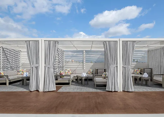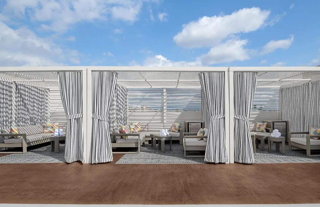 Guests can utilize a well-equipped fitness center, a heated rooftop swimming pool with a splash zone, and complimentary grocery delivery service. The hotel also features a meeting room for business gatherings.