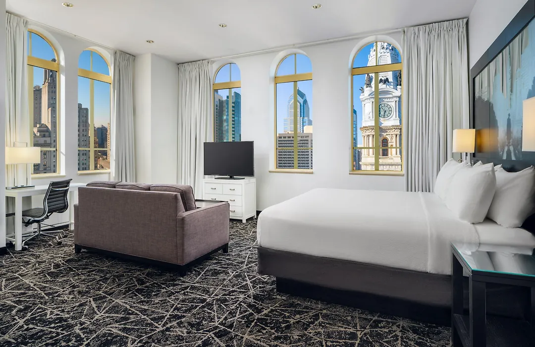 The hotel is located within walking distance to major landmarks like Reading Terminal Market, Kimmel Center for the Performing Arts, and Love Park. Nearby transportation options include City Hall Subway Station and local bus services.