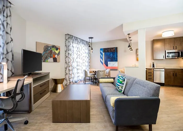The hotel offers modern, apartment-style suites equipped with plush Marriott bedding, ergonomic workspaces, and full kitchens, allowing guests to enjoy a home-like experience. Selected rooms include amenities such as a fridge, oven, and dishwasher, catering to extended stay guests.