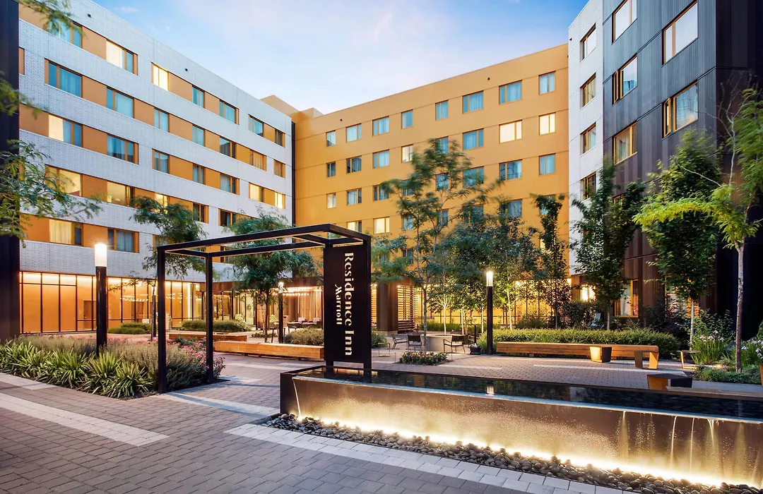The hotel features a fitness center with modern equipment and an indoor pool for guests to maintain their exercise routine. For business needs, Residence Inn offers 6045 square feet of event space equipped with AV technology and catering services.