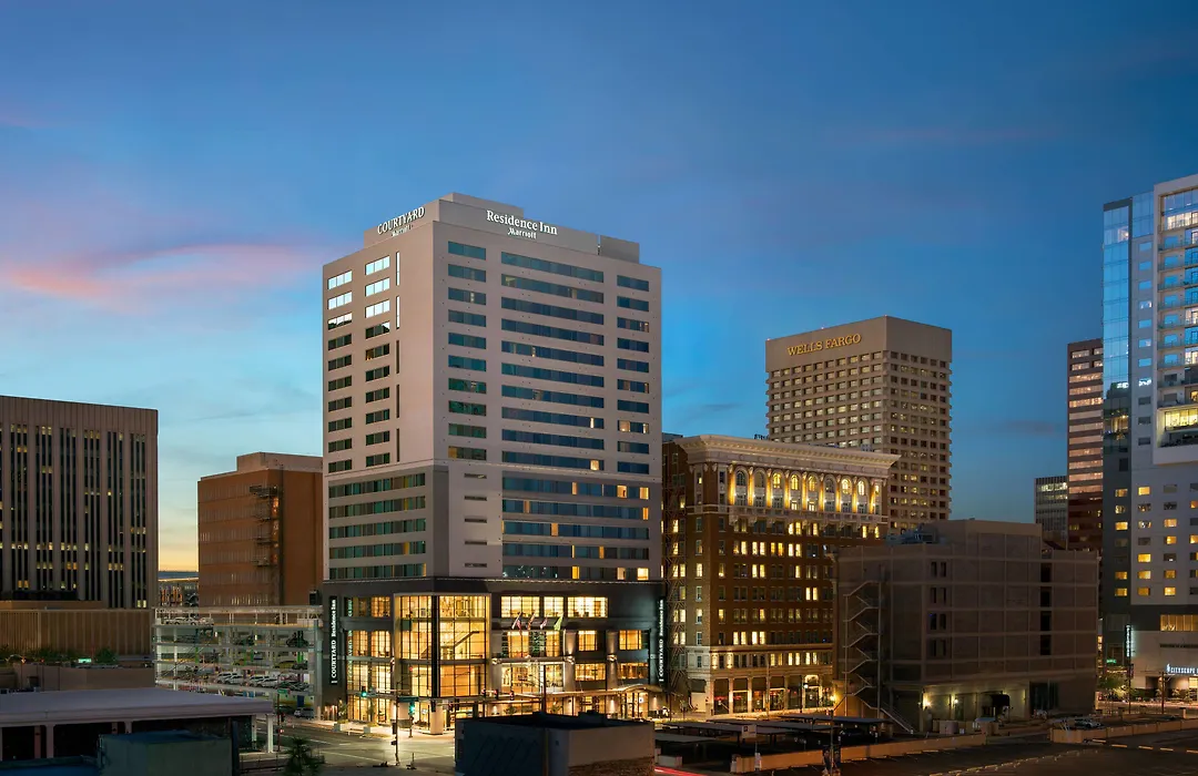 Residence Inn by Marriott Phoenix Downtown is in a vibrant business and entertainment district, close to landmarks such as Chase Field and the Arizona Science Center. Public transport options include city trains and bus stops within walking distance, facilitating easy access to explore the area.