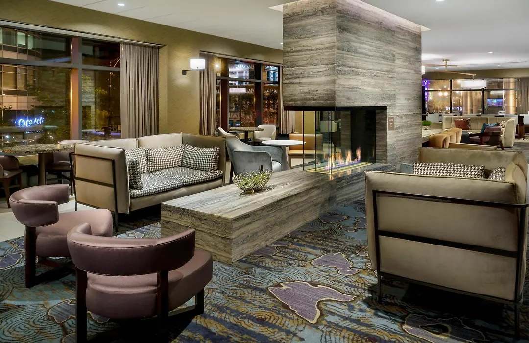 Stylish guest rooms at the Residence Inn are equipped with a fridge, stove top, and dishwasher, suited for extended stays. Guests can start their day at a complimentary hot breakfast and enjoy drinks and small bites at Holloway's Bar, which serves the signature caramel brandy cocktail inspired by the Milk Dud.