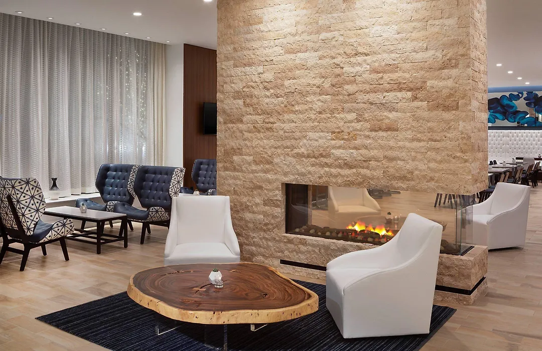 Dining options include ONE CLUB restaurant, specializing in Latin American cuisine with shareable tapas and cocktails, overlooking Atlantic Street. Additional dining can be found within walking distance, including venues like Barcelona Wine Bar and Cilantro Restaurant. Guests can unwind at ONE CLUB Tequila Lounge with outside seating.
