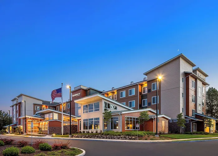 Residence Inn By Marriott Portland Vancouver is a 3-star hotel rated 9.1/10 on Booking.com, featuring spacious suites with fully equipped kitchens. The hotel provides an indoor pool, fitness center, and offers a complimentary hot breakfast buffet.