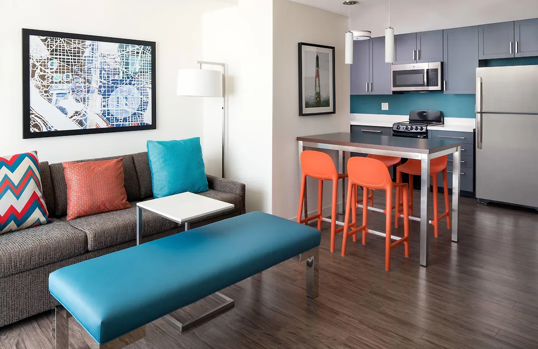 Residence Inn Washington Capitol Hill/Navy Yard offers 170 air-conditioned suites featuring full kitchens and separate living areas. This 3-star pet-friendly Washington hotel includes complimentary breakfast and a fitness center. Supportive staff deliver distinguished hospitality to every guest.