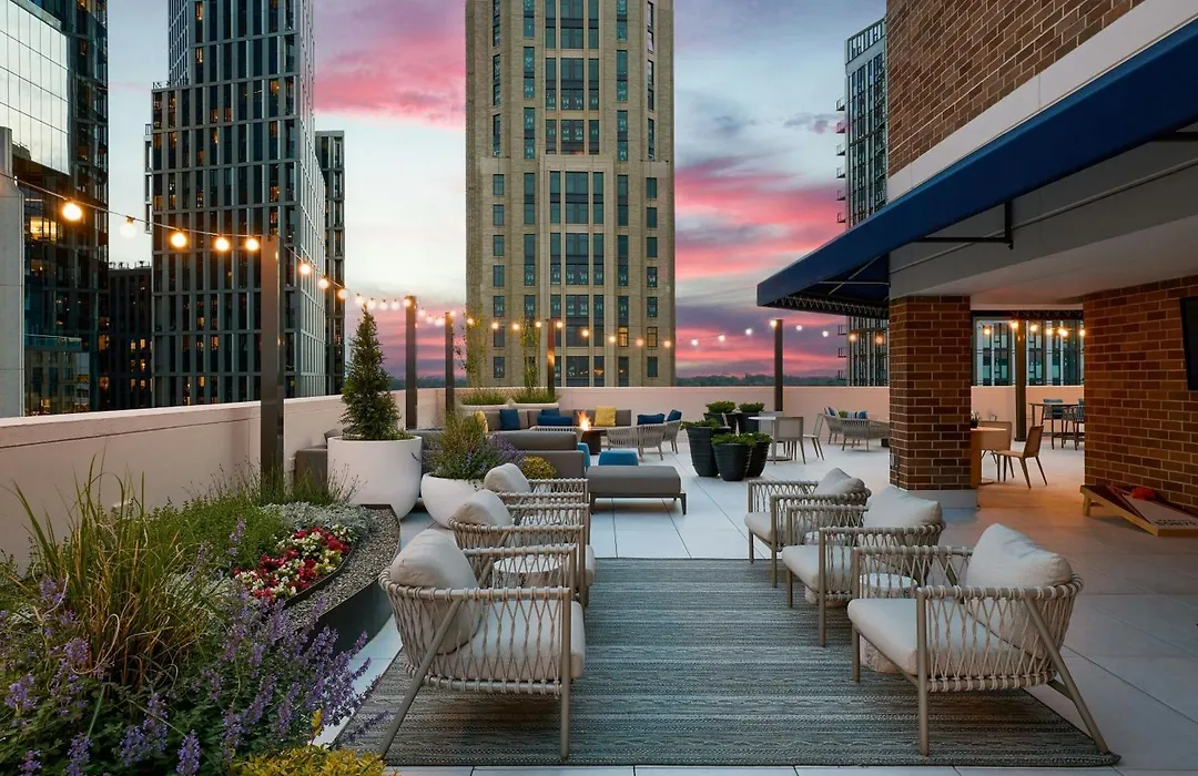 Residence Inn Bethesda Downtown is pet-friendly, allowing two pets up to 50 lbs. The property is conveniently located near the Washington Metro station, enabling easy access to local attractions like the National Institutes of Health and the National Mall.