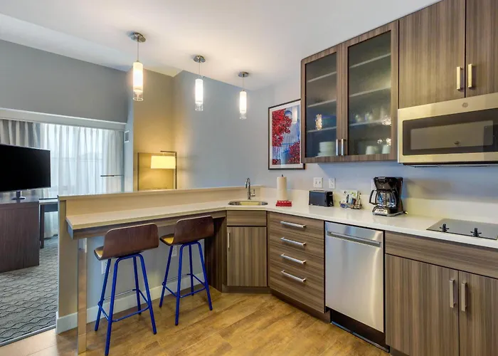 Residence Inn Providence Downtown is a 3-star pet-friendly hotel featuring a Grand Cocktail Bar and daily complimentary hot breakfast. Guests can enjoy spacious studio or one-bedroom suites equipped with fully equipped kitchens.