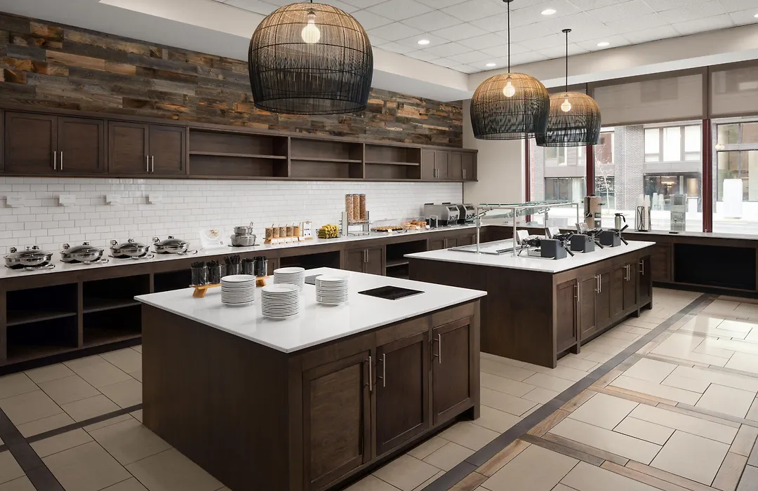 Guests can enjoy a daily complimentary breakfast with assorted pastries and healthy yogurts, along with dining options at nearby restaurants like Bambuza and McCormick & Schmick's. The 24-hour Market offers sandwiches, snacks, and ice cream.