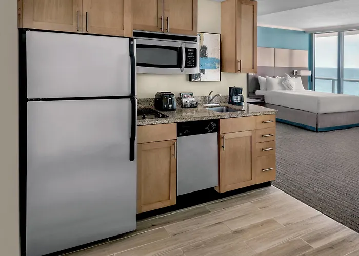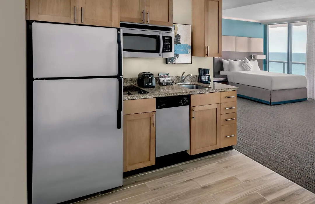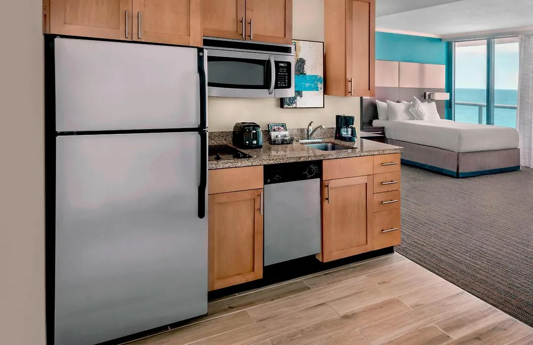 Guest rooms at Residence Inn Fort Lauderdale Pompano Beach/Oceanfront feature modern amenities such as air conditioning, flat-screen TVs, and private bathrooms. The suites are individually decorated and equipped with kitchenettes with full-sized refrigerators, stovetops, and in-suite laundry facilities.