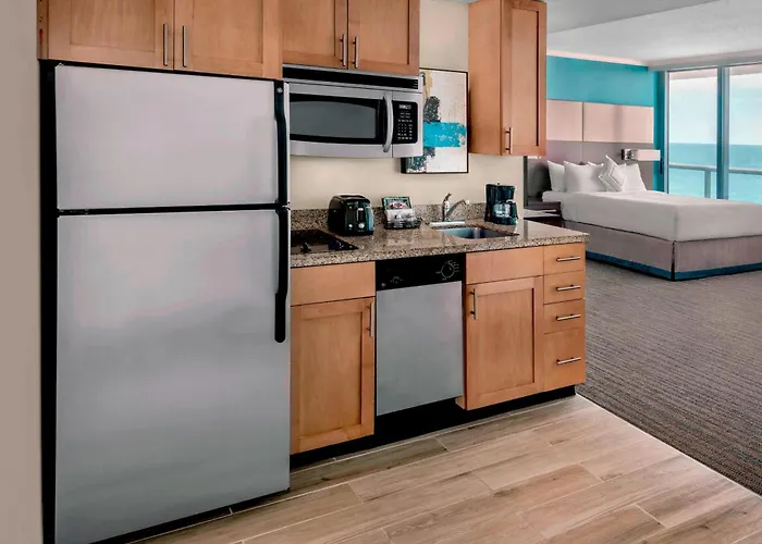 Residence Inn Fort Lauderdale Pompano Beach/Oceanfront is a 3-star property showcasing stunning views of the Atlantic Ocean and offering spacious hotel suites with full kitchens. Guests can take advantage of the beachfront access and outdoor pool while enjoying oceanfront dining at THE SAND BAR.