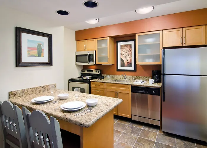 Each suite at Residence Inn Santa Fe includes kitchens with stainless steel appliances, a microwave, and a refrigerator. Guests have access to 40 HD channels and complimentary Wi-Fi in their rooms.