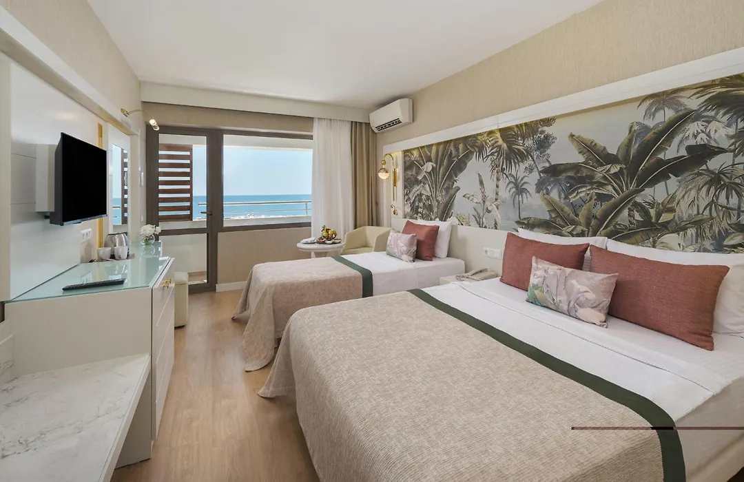 The guest accommodations at Adin Resort Hotel include spacious air-conditioned double rooms and suites, equipped with flat-screen TVs, minibars, and seating areas. Select rooms offer sea views and additional amenities such as a private pool and sauna.