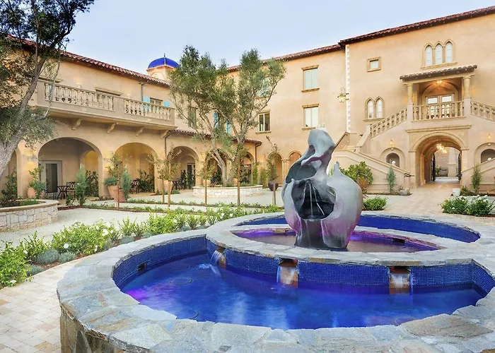Allegretto Vineyard Resort Paso Robles is a 4-star Tuscan-style resort spanning 20 acres, featuring vineyards, olive trees, and Mediterranean gardens. Amenities include a full-service spa, Cello Ristorante & Bar, an outdoor pool with cabanas, and pet-friendly accommodations. The resort has a Booking.com rating of 9.3/10.