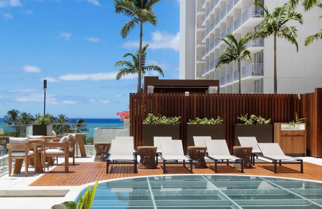 Alohilani Resort Waikiki Beach is a 5-star resort on Kalakaua Avenue featuring a stunning infinity pool and multiple dining options. Key amenities include a 280000-gallon Oceanarium and a wellness-inspired fitness facility. This Honolulu hotel offers luxurious beachfront accommodations and a variety of activities for all ages.