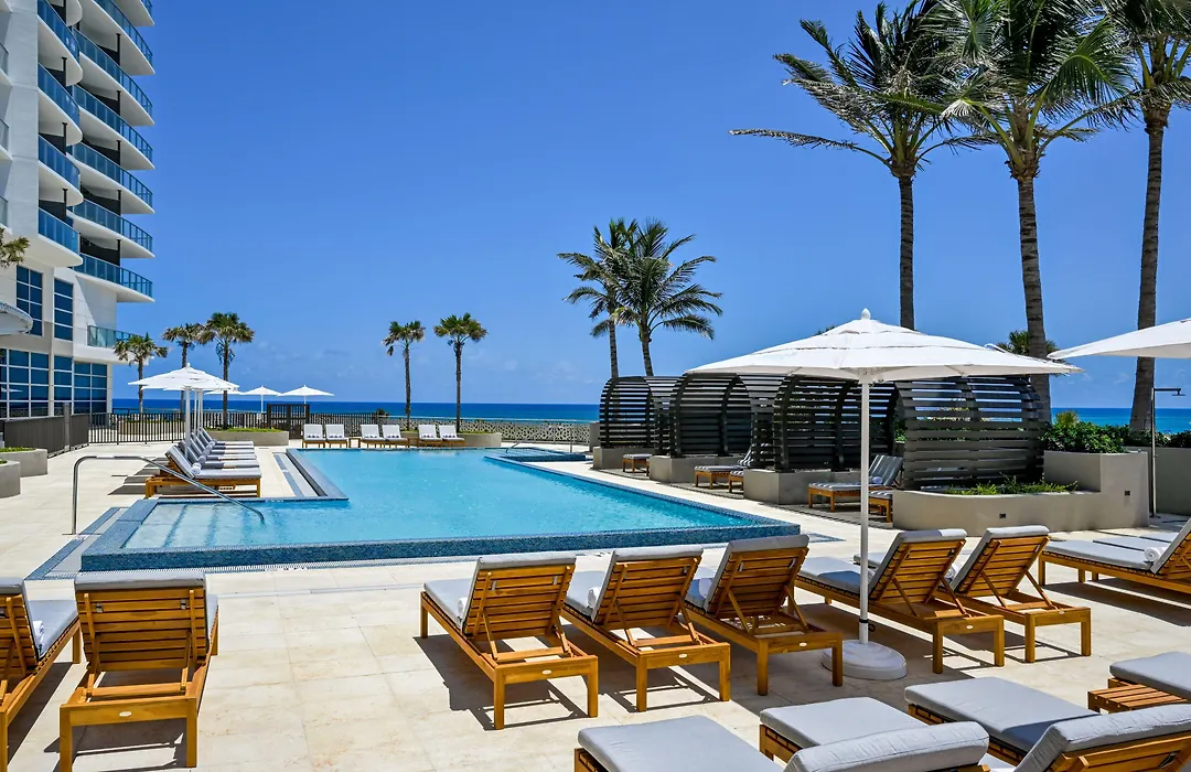Amrit Ocean Resort & Residences Singer Island offers a luxurious oceanfront experience with a focus on wellness and vitality. This 5-star Riviera Beach hotel features an outdoor swimming pool, garden, and a world-class spa alongside various dining options.