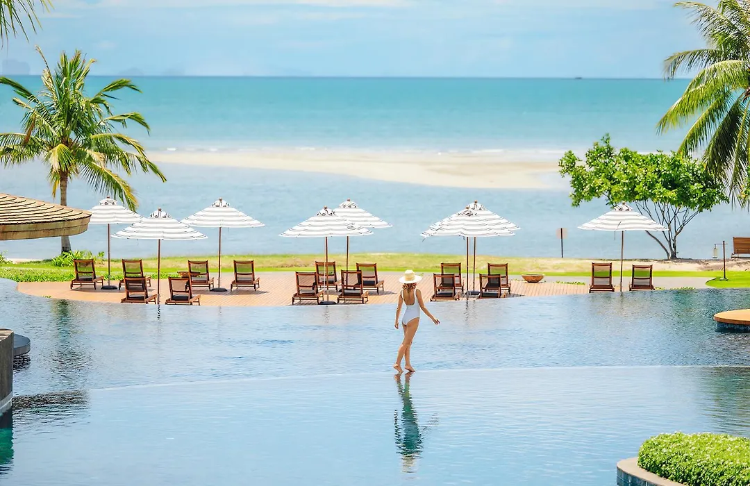 Anantara Koh Yao Yai Resort & Villas features 148 suites, pool villas, and penthouses, with options for families such as suites with bunk beds and slides. The spacious accommodations range from 968.8 to 3261.5 ft² and are designed with floor-to-ceiling glass doors offering stunning views.