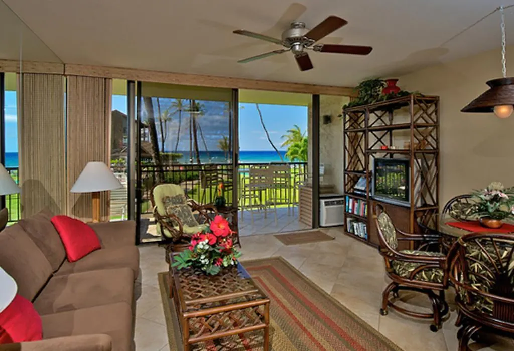 Aston at Papakea Resort includes spacious studios and one to three-bedroom suites with fully equipped kitchens, in-room washer/dryer units, and private balconies with stunning ocean or garden views. Each accommodation is designed for convenience, featuring amenities like air conditioning and flat-screen TVs.