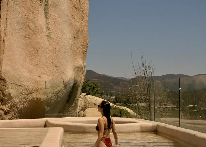 Banyan Tree Veya, Valle De Guadalupe - A Wellbeing & Wine Resort is a 5-star hotel offering 30 modern villas with private plunge pools in a serene environment. Guests can enjoy an outdoor swimming pool, a full-service spa, and an on-site winery within the property.