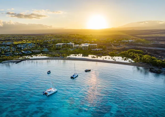 Waikoloa Beach Marriott Resort & Spa is a 4-star beachfront hotel featuring unique amenities and diverse dining options. Guests can enjoy three outdoor pools and an on-site Mandara Spa, along with various water sports activities directly on Anaeho'omalu Bay.