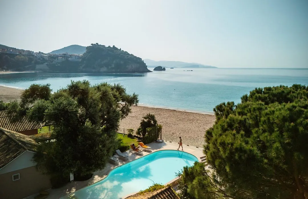 Parga Beach Resort offers a 5-star beachfront experience with over a hundred premium rooms and suites situated amidst olive trees and gardens. Guests can enjoy direct access to Valtos Beach along with amenities like multiple swimming pools and a wellness center focusing on holistic health.